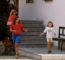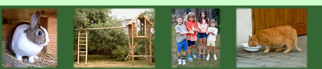 In unserem weitläufigen Obstgarten kann geschaukelt, gerutscht